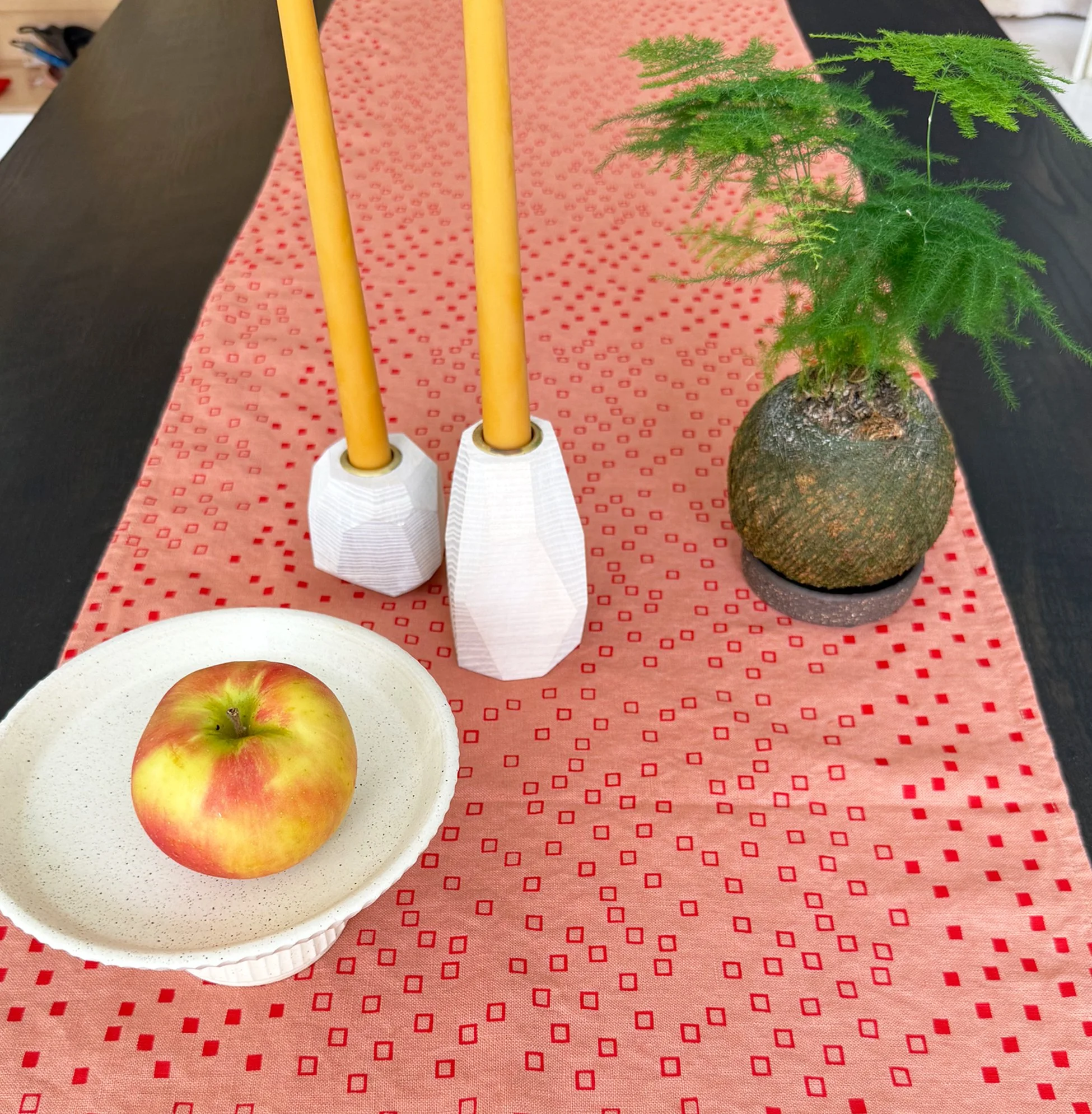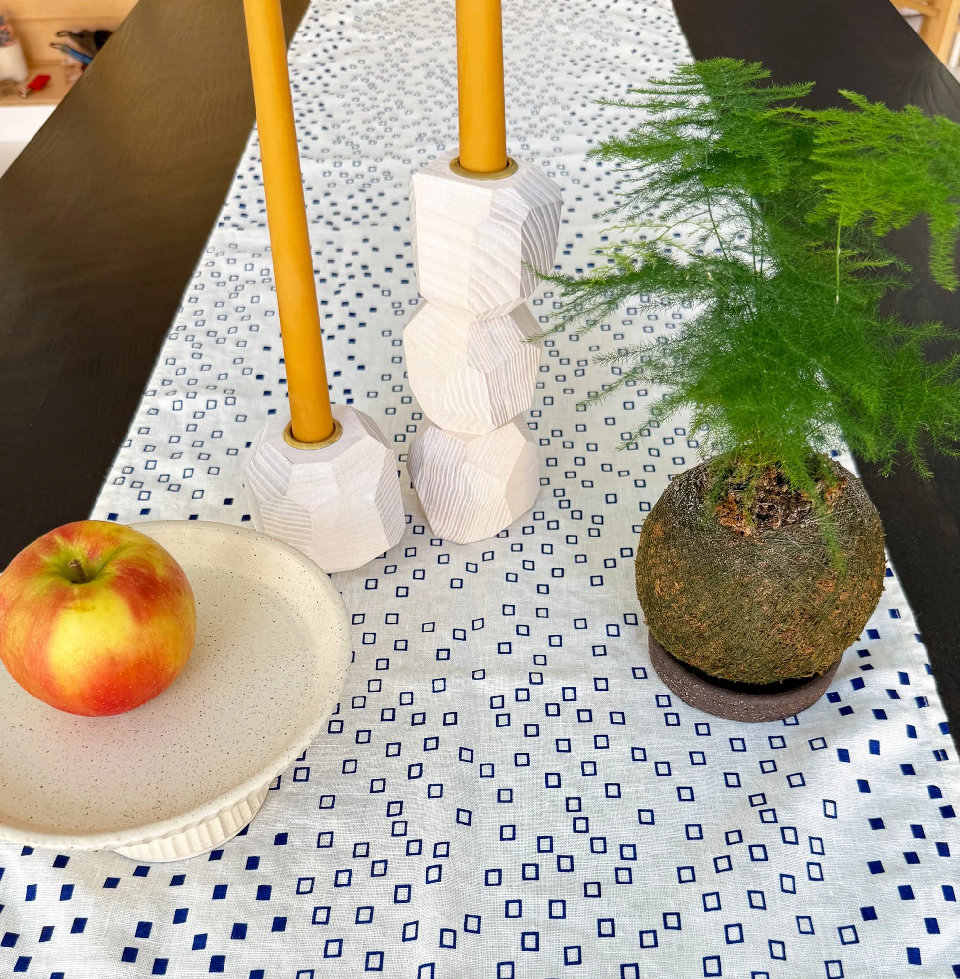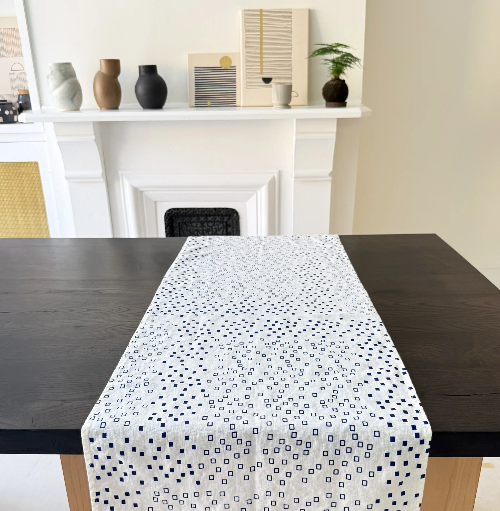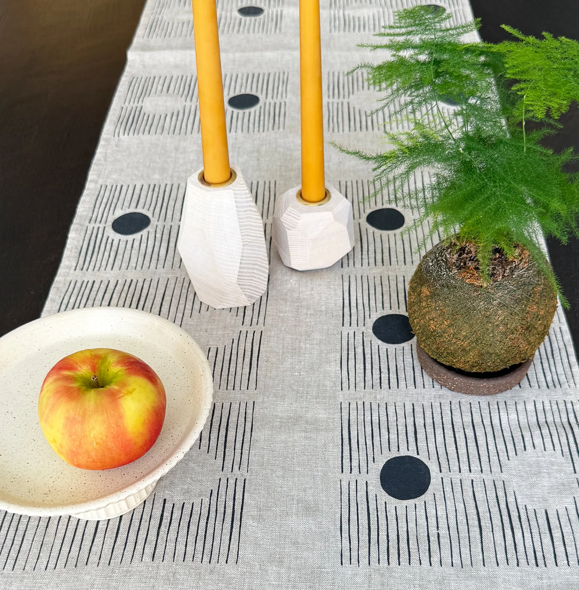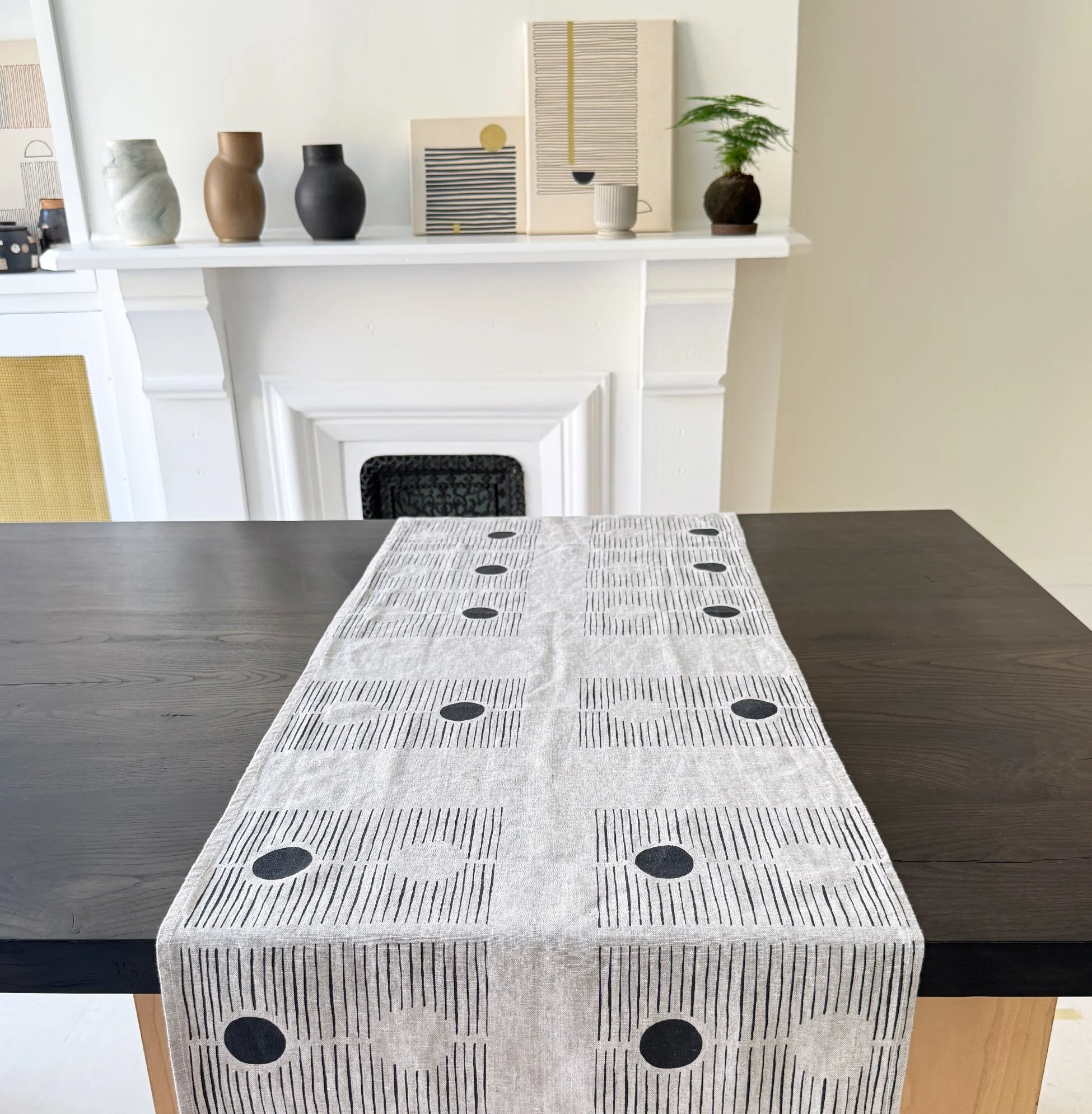Categories: All TABLE RUNNERS PLACEMATS NAPKINS NAPKIN RINGS COASTERS DOUBLE COASTER TRIVETS All / Table Runner/Charcoal Peeka on Stone Linen from $84.00 Table Runner/Charcoal w/White Totem on Stone Linen from $84.00 Table Runner/Charcoal w/Copper Duo on Ivory Linen from $84.00 Table Runner/Blau Snippets Print on Ivory Linen from $84.00 Table Runner/Red Snippets Print on Punch Linen from $84.00 Table Runner/Midnight Stack Print on Citron Linen $160.00